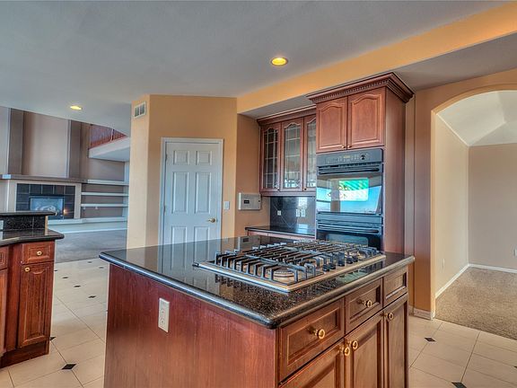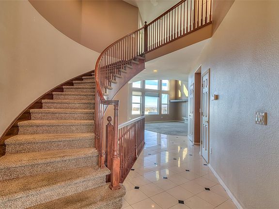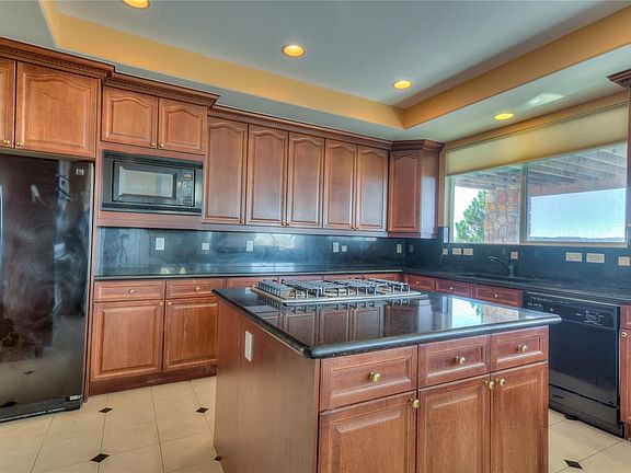 This house is a must see, full of custom upgrades and elaborate finishes. The grand entry has a very intricate medallion design, front facing staircase, and marble floors. The masters bedroom is very spacious, complete with a five piece bath, fireplace and private walk-out deck. Each of the 6 bedrooms is accompanied with an attached full bathroom and walk-in closet. This house has a lot of storage space with linen closets and extended storage rooms in the basement. The kitchen has all granite countertops, pull-out kitchen drawers, walk-in pantry, butler's counter and island stove. The walk-out basement is finished, complete with a mother in-law suite, extended sitting area, movie theater, recreation room. New carpet. The outside of this house is just as exquisite as the inside, with a waterfall pond at the entry, oversized deck, mature fruit trees in the backyard, front and back gardens, and a dog run for pets. The home is surrounded by beautiful views of the Rocky Mountains.
