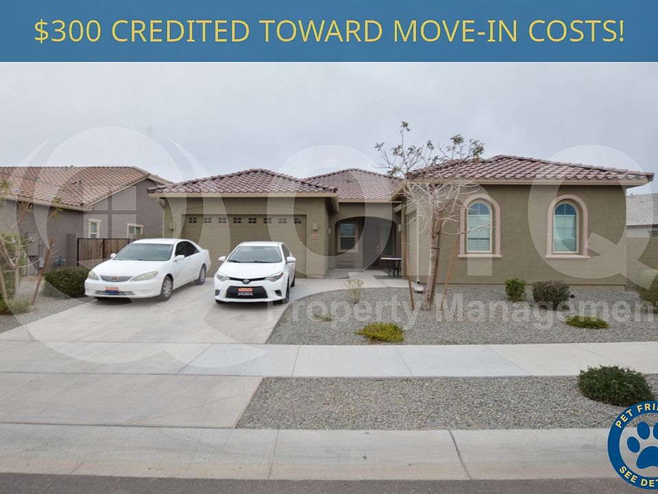 Available Now! 2,569 SQ FT! 4 bedroom, 3 bath home in Queen Creeks' Hastings Farms! 2020 build with desirable modern features throughout. Next generation home offering an attached casita with private entrance, full kitchen, open living/dining, bed + bath, & side yard access! Main home features a stunning eat-in kitchen with included appliances, & expansive center island/breakfast bar. Open living/dining, great for entertaining! Nicely sized bedrooms. Primary suite with full bath + walk-in closet! Neutral interior with tile flooring in all the right places. Blinds + ceiling fans! Laundry room with included washer/dryer. Desirable smart home features! Enjoy a low up keep backyard with covered patio. 3 car garage! Hastings Farms is a well maintained community with playgrounds, & biking/walking trails throughout.