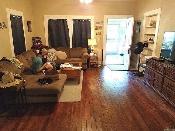 Located in High Springs' historic district, this charming home built in 1929 is three blocks from the downtown business district. Typical of many houses of that time, the floors are of heart-pine wood, the ceilings are high, and there's a full-length screened front porch perfect for a collection of rocking chairs. The front entry leads to a living room/dining area combination with the kitchen at the back off the dining area. On the left side of the house are two bedrooms. A hall full bath is near the front bedroom. The back bedroom has a full bath and an area suitable for a home office. Off the kitchen is a small screened porch which overlooks the back yard. The lot has 74 feet along the street and is 100 feet deep, making it 0.17 acres. A metal roof was added in 2018. The central a/c unit was replaced in 2013. The exterior of the home was painted in 2020. There's a fireplace opening in the living area, but it's not used and is considered ornamental. Currently leased until September of this year, it's not available for immediate occupancy by a new owner. Of course, it will generate income for the next owner if purchased before the current lease expires. Considering the strong demand for rental properties in High Springs, it has substantial potential if continued as such.