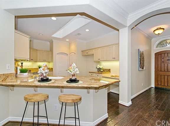 Welcome to Trilogy at Glen Ivy, a private gated 55+ community and Golf Course living. This is the beautiful Sage model Gem with many upgrades and a lush private backyard and alumiwood patio cover. The kitchen skylight exudes natural brightness into this custom kitchen with designer cabinets and granite counter tops. The rich wood flooring is gorgeous thru out and lends a flow to this single story home. Both bathrooms are upgraded and of course there is crown molding throughout. Newer A/C unit, Indoor laundry room with cabinets and sink, attached two car garage.This property is priced to sell, don't let this pass you by.