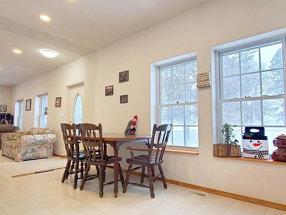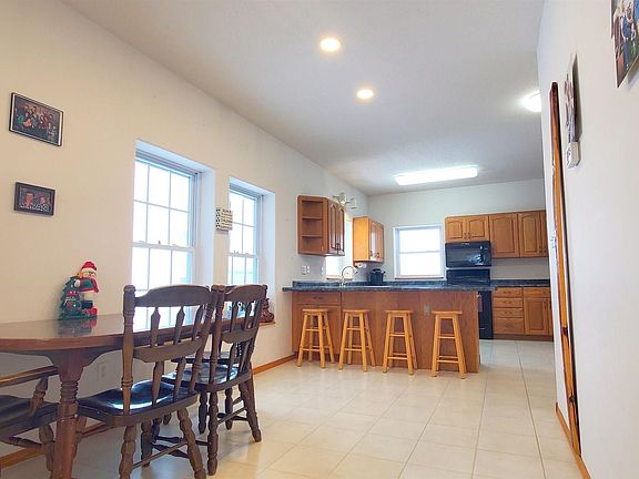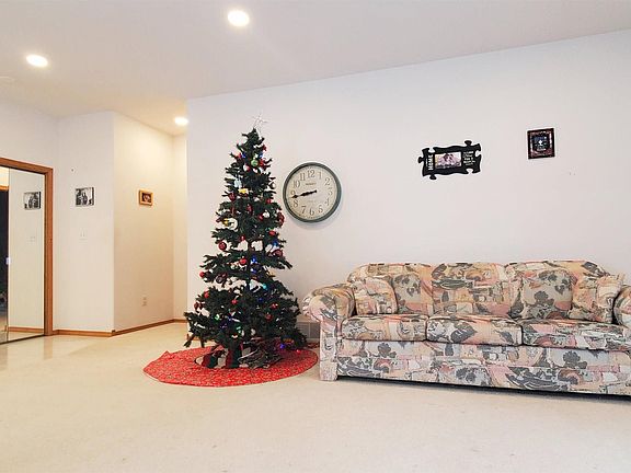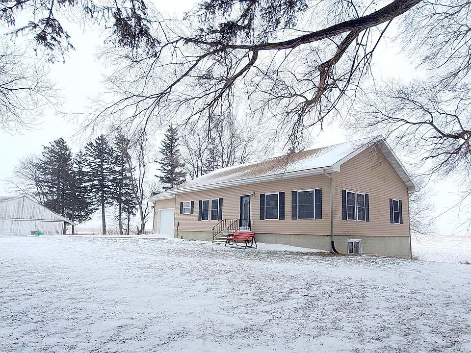 This STEEL frame home, built in 1999 is nestled on 2.36 acres. Conveniently located on a hard-surfaced road between Ventura and Garner! A nice grove encircles the house and yard. The front door opens to a large living room with large windows for natural light! A wall was recently taken out to open up the dining room/kitchen to the living room, creating a great open floor plan. The large dining area has additional seating with a kitchen peninsula. The ample kitchen boasts great cabinet and countertop space! A master suite is quietly located off the living room. A second bedroom is nicely private by the back entry. Adjacent is the second bathroom, convenient for guests! A large, decorative staircase leads to the expansive basement. The walk-out basement displays a large family room, dining room, and kitchenette! 2 additional bedrooms, and a large 3/4th bathroom finish out the large lower level. The basement floors are stained and supplied with in-floor in!
