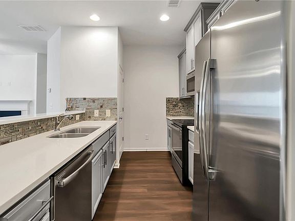 Stunning townhome in the Belmont Hills community! This thoughtfully designed 4 bedroom, 3.5 bath home offers an abundance of natural light and modern finishes throughout. The main level features an open-concept layout with a sleek kitchen showcasing quartz countertops, stainless steel appliances, and a spacious island that flows seamlessly into the dining and living areas. Upstairs, the primary suite boasts a spa-like bath with a separate tub and shower, double vanity, and generous walk-in closet. Two additional bedrooms, a full bath, and a convenient washer/dryer complete the upper level. The terrace level provides a private bedroom and full bath, along with extra living space and direct access to the fully fenced backyard ideal for pets and outdoor enjoyment. Parking is easy with a one-car garage plus a driveway accommodating two additional vehicles. Lawn care is included in the HOA for low-maintenance living. Belmont Hills is a welcoming community in Lithonia, perfectly located near shopping, grocery stores, and I-20. Just off Covington Highway this is one you don't want to miss!