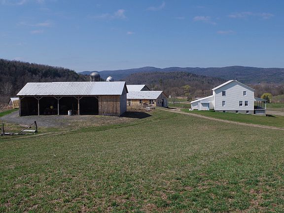 Highly scenic farm w/multiple homes features 31 acres of river flats, land capable of a 30 ton corn yield. Many buildings, mostly new. 3671' of road frontage and another 4100 'on the Mettawee River, where one can swim and fish. A low 250' elevation means far warmer weather and a longer growing season than you'd expect this far north. Mountain views are everywhere. It sports varied terrain with maybe 1/2 wooded. There are small amounts of Wetlands and a never-failing spring that easily services all homes and dairy barns. 70 acres of Organic-certified cropland + pastures. As the owners have lots of land to rent nearby, they pasture some of their own crop land. A neighbor allows them to use his crop land and in exchange gets a few hours of help from the owners and the right to tap some of their sugar bush, a handshake agreement. There are 1300 taps and a sugar house on the property. There are some new seedings and 4.5 acres of winter spells and almost no stones here. Vergennes clay soil on the uplands and Hamlin & Teel silt loams on the river bottom. There are two complete sets of buildings, I will discuss them separately as they are separated by the road, which would make an obvious division line if a new owner wished to subdivide. The Main Side - The main home is < 7 years old as are all the buildings other than part of the barn. The home sits well off the road and has ~2300 ft2 of living space + a huge laundry / storage room in addition. A 10' wide front porch affords wood and ice storage underneath it. Downstairs, all floors are red oak with painted plyboard upstairs, where are located 4 bedrooms and a storage room (positioned to serve as an upstairs bath). Downstairs, there is an open floor plan with the kitchen, dining area and living rooms forming an "L". Double doors open to the master bedroom. And a pantry is off the kitchen. The dairy barn is 38x66' with 31 tie stalls; a milk house and ice house are attached on one side (with a 16' leanto). On the other side, a hay barn (the only old building here) is attached. It is 36x100' and has a 16' leanto addition for machinery storage. There are 12x45 and 14x50' silos. 8 straight horse stalls are also in the barn. There are many like-new barns for other purposes: a 28x40' barn intended to be used as a shop, a 26x60' machinery shed (it also has 4 straight horse stalls), a 32x50' bandsaw mill, and a 20x72' circular saw mill with attached sawdust room. There is also 20x32' drive-through corn crib. Across the road is another complete farmstead, part of the property. The main home is an older colonial in good shape. At one end is a 28x28' 2 car garage now used as a shop. It adjoins the main home (2598 ft2). First, you will enter an enclosed heated porch with a family room off this. This room has oak floors with some tasteful ceramic tile and also a sink. Then you enter the original part of the home which has a U-shaped open floor plan: kitchen / dining room with a step-down to the living room which features a painted paneled cathedral ceiling. Floors are either stained and finished plywood or painted plywood. A master bedroom with double doors is off this area. Upstairs: 4 bedrooms & a storeroom. At the far end is a laundry /woodshed which measures an incredible 30x34'. It has its own attic. Adding it to the size of the main home would give us a 3600ft2 home. Just to the right of the main home is small building now used for storage, but was rented in the recent past as a one bath, one room home. Outbuildings include a 30x84' three sided machinery shed and of course the dairy barn, a beautiful 66x66' building with a bank entrance to a full loft. Underneath are 29 cow stalls, 8 calf stalls and 9 straight horse stalls. There is a leanto across one end. It has 2 silos. Also in this location is the "Dowdy House" (30x38', 2280ft2). Please call us for the rest of the details: there is not enough space available to tell all abou