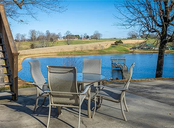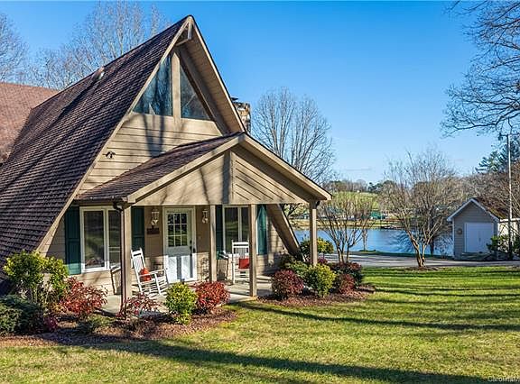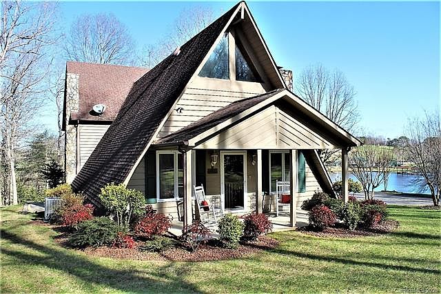 10 Acres of paradise overlooking stocked lake. Beautiful setting, private & secluded. A-Frame style home has a wrap a round porch to enjoy the scenic view. Enjoy fishing from the dock or strolling through the pretty woods. Large cleared area is perfect for the gardner. This home offers 1000+ sq. ft. attached garage with wall of sliding glass doors overlooking lake - great space for artist studio! Garage has a wood burning furnace that warms the space and is ducted to house also. Nice 10x16 outbuilding plus detached carport for recreational vehicles. Home has cozy great room w/wood burning FP and vaulted ceiling. This property borders approx. 1/2 of lake frontage. Enjoy peace and tranquility in country setting, just minutes from shopping. High speed internet available. Seller to have survey done prior to closing giving this home 10 acres. Adjacent house w/3 acres is also available.