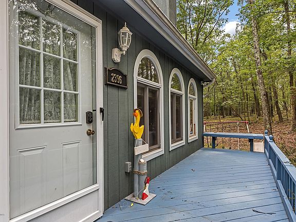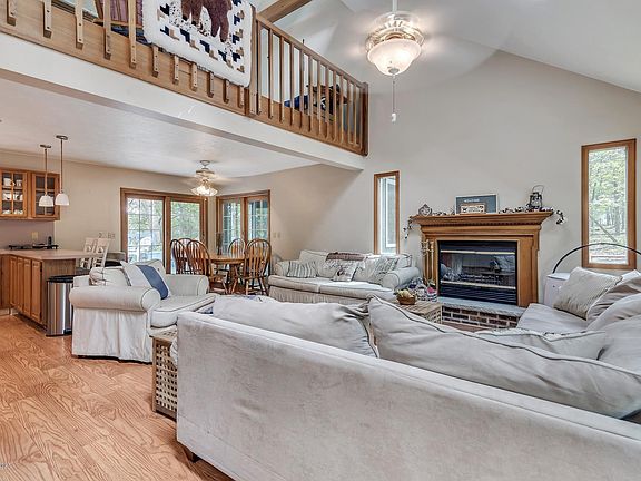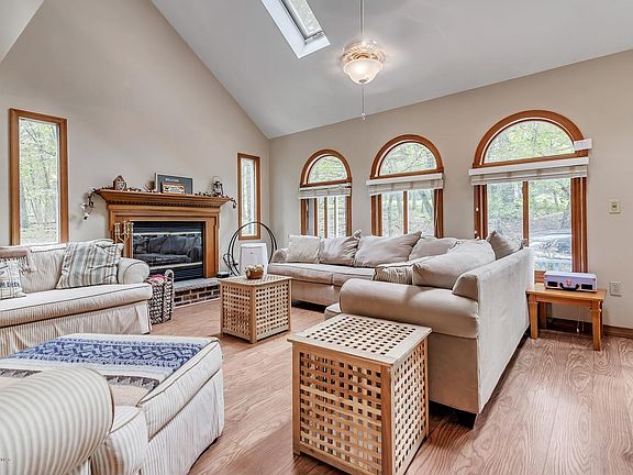 Lovely LAKEFRONT home you just have to see! Located just minutes to the Delaware Water Gap National Recreation Area, Bushkill Falls, the Delaware River and not far from Shawnee Ski Mountain! The Master suite is on the first floor, upstairs has 2 more bedrooms, full bath and a huge loft with LAKEVIEWS! Abundant Palladian windows and skylights provide natural light for the Open Plan design. Twin Dining room patio doors lead to the huge multi-level lakeside deck and the large screened in porch for more lake enjoyment. Completely finished lower level has propane heat, porcelain tile floors, laundry room and a great bar that you will love! Perhaps you always wanted to live on a lake or plan to vacation/invest at a pristine mountain lake. A great value and move-in-ready! Dock, too! This is IT!