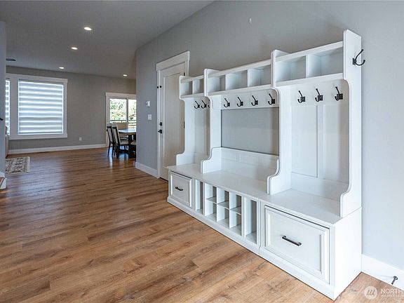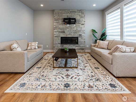 Located at the end of a quiet cul-de-sac, this 5 bed, 3 bath, 2,760 sqft home in a newer development offers modern style & functional design. 1 bedroom and 3/4 bath on the main floor provide flexibility for guests or multi-gen living. Features include quartz countertops, under-cabinet lighting, pot filler, gas fireplace, tiled showers, & an open floor plan with no carpet throughout. Stay comfortable year-round with A/C. Enjoy a fully fenced backyard with covered deck, and a private deck with French doors off the primary suite. Finished 2-car garage, nearly 1/4-acre lot, & premium finishes throughout. Conveniently located near schools, parks, & downtown Ferndale. Don't miss this move-in-ready home with high-end touches in a prime location!