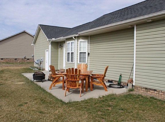Great starter home or empty nester. Lots of upgrades when built which includes wood and ceramic tiled floors. Upgraded faucets and light fixtures. Open and roomy floor plan includes great room, kitchen, and breakfast area. Kitchen, laundry room and both baths have tile floors. Great room and hallway has wood floors. Bedrooms have carpet. Kitchen has lots of cabinets with eat at bar. All rooms have ceiling fans. Recessed lighting throughout. Cathedral ceiling in great room and one of the bedrooms. Covered front porch that wraps around one corner of the house. Nice patio out back.New heat pump in 2014. 100% USDA loan eligible.
