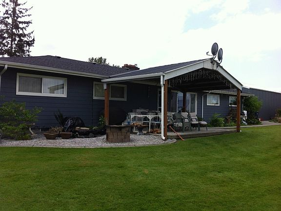 A beautiful home in the country with a view of the Canadian Mountains. The home has 1196 sq/ft of living space with three bedrooms and one and one half bathrooms. A galley style kitchen with granite counters and lots of cupboard space. The hardwood floors in the dinning room flows into the living room with a large window to view the backyard and flowers. The backyard has a covered patio area. There is a 40x30 three bay shop with a side canopy. Also a large garden area with greenhouse.