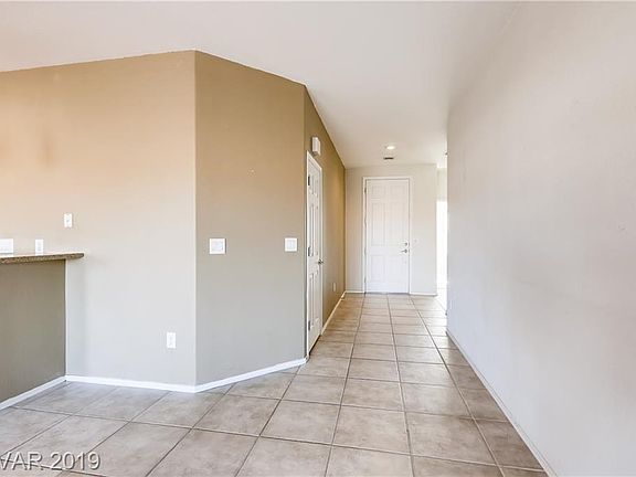 Virginia on elevated lot with strip view from living room and master, and strip and mountain views from the private backyard. 3 bedrooms, 2 bath; open floor plan with combo living/dining area. Kitchen has breakfast bar, granite counters, slide out drawers and stainless appliances. Diagonal tile flooring in traffic and living areas; carpet in bedrooms. Painted concrete driveway and approach. Very close to walking trailheads and Liberty Center.