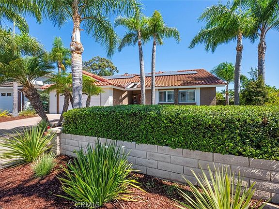 RARE OPPORTUNITY! A single level POOL home in Kite Hill! This fantastic three bedroom, two bathroom home is situated on a large corner lot within a cul-de-sac of only five other homes. The street is near the top of the community - plenty of ocean breezes! The custom paver driveway, craftsman-style exterior wood trim, lush front yard landscaping and tropical palm trees give this home fantastic curb appeal. Enter the beautiful front door and feast your eyes on the main living area featuring an open floor plan showcasing vaulted ceilings with skylight, a gorgeous wrap-around style fireplace and polished travertine floors. The remodeled kitchen boasts custom cabinets, granite countertops and stainless-steel appliances including a Wolf oven, GE dishwasher & Whirlpool refrigerator. Step out through the double French doors to enjoy your sparkling blue pebble-tech style swimming pool featuring a relaxing waterfall and plenty of room to entertain in the low-maintenance back yard! The front yard is not only gorgeous but also practical with a generous-sized private grass area for the kids & furry family members to play. There is extra room on both sides of the home to grow your garden or do further expansion. The spacious primary bedroom is light and bright thanks to a large sliding door that also leads to the back yard. Two additional bedrooms offer plenty of space for family, guests or a home office. There is a separate laundry room inside the home. The garage offers plenty of storage cabinets and an epoxy coated floor. There is also a NEW 6.55 KW solar system with a 10 KWh battery backup system installed in 2024! Located in the very desirable community of Kite Hill, which offers exceptional amenities including a large pool/spa/showers, tennis courts, dedicated pickleball courts, sand volleyball court, basketball court, kids playground and multiple grassy fields for the family – dogs included! All for a VERY reasonable HOA fee. The community is minutes from the world-class beaches of Laguna, Dana Point Harbor, Aliso and Wood Canyons Wilderness Park and the Laguna Niguel Regional Park with a lake for fishing. Also conveniently close to shopping including Costco, Home Depot, Whole Foods, Walmart and many fine restaurants. Make this YOUR dream home come true!