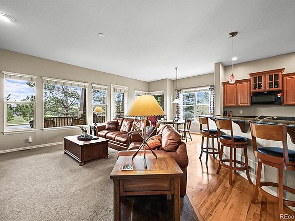 RARE FIND: Corner Lot Ranch Patio Home with Main-Floor Primary Suite & THREE-CAR GARAGE! Welcome to this beautifully maintained and stylish ranch-style patio home in the desirable Fieldstone at Tallyn’s Reach community. Nestled on a sunny cul-de-sac corner lot, this low-maintenance, west-facing gem is packed with thoughtful upgrades and designed for easy, elegant living. Step inside and fall in love with the open-concept layout, featuring rich wood flooring, crown molding, recessed and pendant lighting, and fresh, modern paint throughout. The gourmet kitchen boasts granite countertops, appliances, and custom window coverings, flowing seamlessly into the spacious dining and family rooms—perfect for entertaining or cozy nights in front of one of the home’s two gas fireplaces. Enjoy the convenience of main-floor living with a luxurious primary suite, complete with double closets and a 5-piece en-suite bath. A laundry room, guest bathroom, and elegant living spaces round out the main level. Downstairs, the finished basement offers even more space with two large bedrooms, a full bath, a second family room with built-in shelving and fireplace, plus a huge storage room. Outside, relax on the inviting front patio, and take advantage of the oversized THREE-CAR GARAGE—a rare bonus! All of this in a welcoming, well-kept community with a friendly HOA, just minutes from E-470 for easy access to Denver, DIA, and the Tech Center. Move-in ready, full of charm, and waiting for you - don’t miss this one!