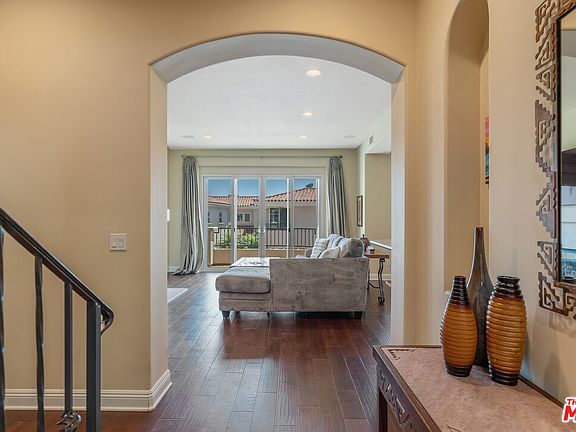 Welcome to coastal living in this beautifully upgraded 3-story townhome with ocean views, just minutes from Pepperdine and the beach. Ideal for those looking for space, privacy, and high-end amenities. The first floor offers a secure 2-car garage with overhead storage racks, built-in cabinetry, storage closets, and a whole-home Halo water filtration system. On the main level, enjoy an open-concept layout with soaring high ceilings and hardwood floors throughout. The formal living room features an elegant gas fireplace and balcony, while the dining room, breakfast bar, and chef's kitchen with Viking appliances, center island, pantry, and plenty of prep space make entertaining effortless. A bonus room currently set up as an office with a king size Murphy bed and closets can function as a third bedroom, guest room, or creative studio. It opens to a serene, fully fenced grassy yard - private, low-maintenance, and perfect for relaxing, gardening, or entertaining with a built-in gas line ready for a grill or firepit. A stylish guest bathroom and statement chandelier complete this floor. Upstairs, the primary suite offers sweeping ocean views from every window - including the bedroom, bathroom, shower, and soaking tub - plus a cozy gas fireplace, private balcony, and massive walk-in closet. The second bedroom has its own bath and balcony with mountain views. Luxurious travertine tile in the bathrooms adds a timeless, spa-like touch. A sunlit upstairs office with skylight and an in-unit laundry room with a sink and ample storage complete the top floor. Dual-zone A/C and heating systems allow for independent climate control on each floor, ensuring personalized comfort year-round. Smart Nest thermostats let you control the temperature remotely, and the home is pre-wired for ADT security for added peace of mind. Flexible layout, ocean views, multiple outdoor spaces, and top-tier finishes make this home a standout. Located in the exclusive 22-unit gated community of Toscana, residents enjoy access to a clubhouse, fitness center, heated pool and spa, beautifully landscaped grounds, security, and controlled entry. A pedestrian and bike path provides convenient access to Malibu Country Mart, Surf Canyon, Cross Creek Ranch, Bluffs Park, Malibu beaches, and Pepperdine. Don't miss your chance to live the Malibu lifestyle and unbeatable proximity to Malibu's best amenities.