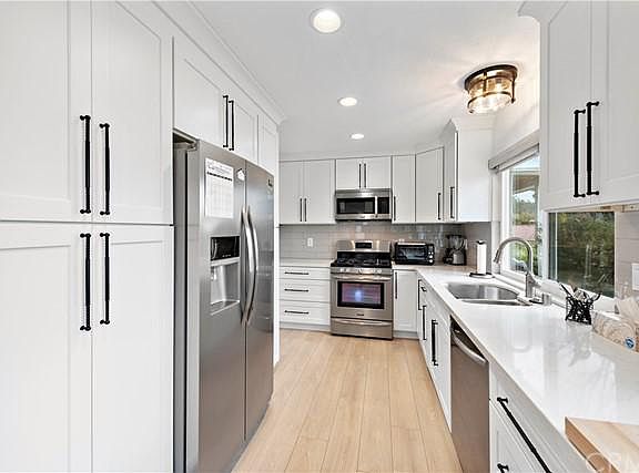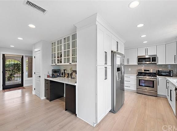 On top of the world with panoramic city lights views. Immaculate single-family home on a single loaded cul-de-sac street. Remodeled Blanca floorplan. Newer contemporary front door with side window. Newer laminate wood floors throughout. Living room with beamed vaulted ceiling and recessed lights. Cozy stone fireplace with rustic wood mantle. Remodeled open kitchen with butcher block breakfast bar. Newer stainless-steel appliances. Newer quartz counters with tile backsplash. Built-in desk around the corner from the kitchen. Spacious master suite with closet organizers. Remodeled master bathroom with walk-in shower and frameless glass enclosure. Beautiful tile work in both bathrooms. Newer dual pane windows and sliding doors throughout. Plantation shutters in both bedrooms. All other windows have roll down shades. Large covered patio with panoramic views! Patio has been paved with flagstone and the short block wall has been finished with capstone. Perfect place for entertaining and to enjoy the sunset. Newer HVAC. Home has been REPIPED throughout. A beautiful place to call home. Community is spread throughout 484 acres with mature trees & beautiful hills. Association offers two recreation center which offers pool, spa, club house, tennis, gym, paddle tennis, shuffleboard courts, billiards & much more. Trash pickup & outside painting are covered by the association. This is a 55+.