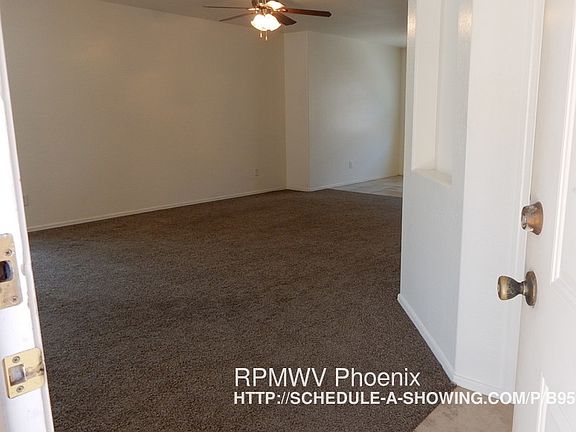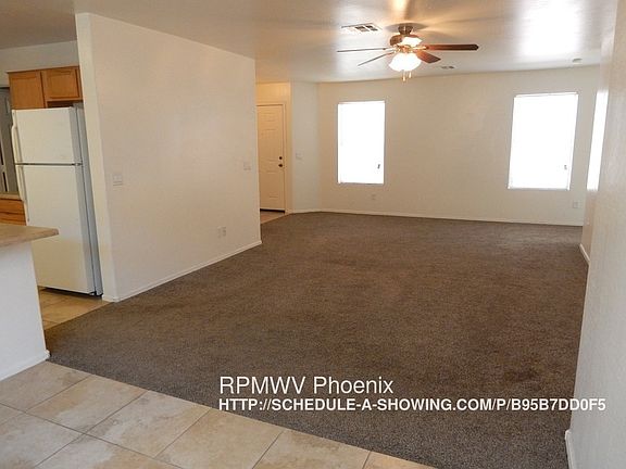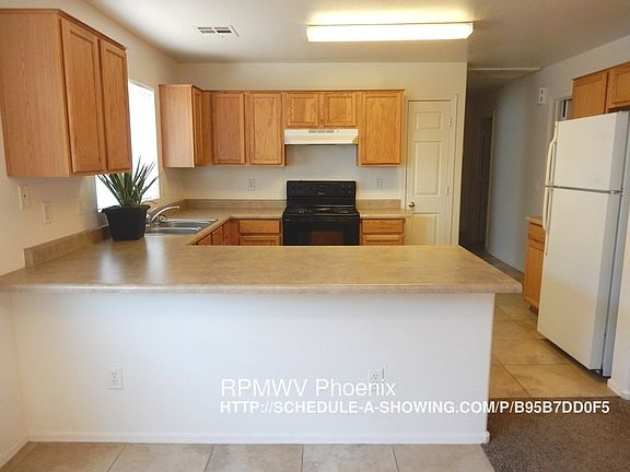 SCHEDULE A SHOWING ONLINE AT: showmojo.com/lh/b95b7dd0f5 Lovely home in Sundance, Buckeye very close to local school offering 4 bedroom 2 bath with open family room great for all types of furniture. Eat in Kitchen with lots of cabinet space, breakfast bar, stove, fridge & dishwasher included! Split floor plan with large master bedroom with walk in closet, private toilet, roman tub & shower. Great natural light through out! three additional guest bedroom with blinds throughout. Washer & dryer hook up. 2 car garage. Low maintenance yard. Pet friendly 1 MAX with additional deposit. Disposal Pets Allowed Range/Stove