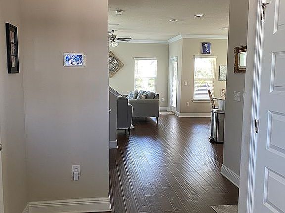 This is a beautiful, Gold Fortified home in the Cypress Village Community of Orange Beach. It is also a Smart Home. The home features granite counter tops in the kitchen and bathrooms, hardwood floors, stainless steel appliances, a gas range for cooking, crown molding, painted cabinets with soft close features, and covered porches. Off of the master bedroom is a covered balcony and the master bath has a large shower with upgraded frameless glass. The outside features a fully sodded yard with a sprinkler system, landscaping, and fabric shield for the exterior windows. The peaceful backyard also has a large deck overlooking a pond. Cypress Village boasts a newly renovated community pool complete with a lazy river. It is located directly across the street from the new, state of the art Orange Beach Middle and High School. The Wharf is just to West with great shopping, casual and upscale dining, a movie theater, concert amphitheater and more! No listing agents, please!