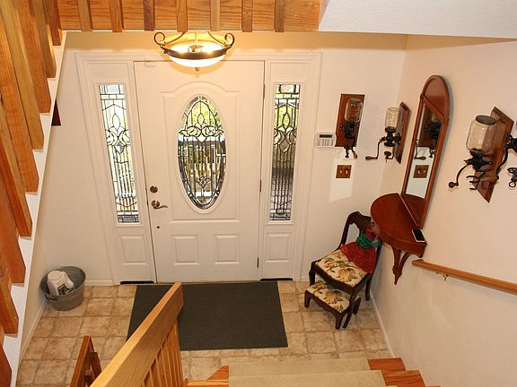Custom Split level home in great in-town location. Backs to Munsel Creek Park for exercise and dog walking. Improvements include vinyl dual pane windows, new vinyl on kitchen floor; enclosed 15.5 x 7.5 sun porch with door to large deck for outside entertaining. Main level w/master, living/dining and family room; 1/2 bath & kitchen. Upper has the two guest rooms with full bath. Dbl garage & 16'x13'4 workshop & 13'7x7.5' storage