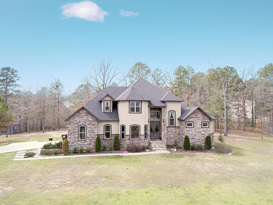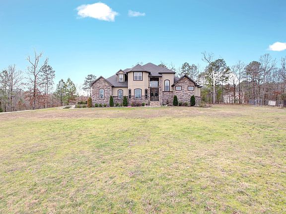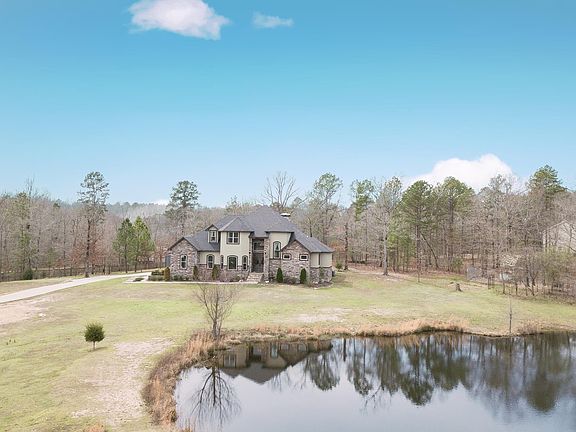 Stunning custom built home on a sprawling 3.08 acre lot with pond in Countryside Estates! Fantastic floor plan that features beautiful hardwood floors throughout, large family room with vaulted ceilings and fireplace, a private study, large laundry room, with Master suite down stairs and 2 bedrooms plus bonus room upstairs! Down stairs also includes a half bath. The luxurious master bath is stunning! Featuring beautiful tile flooring, soak tub, walk-in closet, built-in shelving and a large double sided walk in shower! Fabulous kitchen/dinning room combo features granite countertops, large pantry room, stainless steal appliances and beautifully stained cabinets! Out back features a large covered patio, shop for storing lawn equipment and fenced in area that can be used as a dog run or chickens. Large private pond is exclusive only to this property and has been stocked with fish! Home is in Bryant school district! See agent remarks.