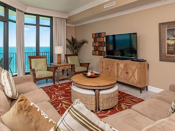 Stunning Views from this Beautiful Gulf Front Condo! 3 bedrooms;4 bath unit with almost 2000 sq. ft. of space for you and your family. This unit offers tiled floors, crown molding, flat screen TVs and a wet bar with an ice maker. Phoenix West has a Gulf front lazy river, indoor/outdoor pools, hot tubs, saunas, fitness center, meeting room, tennis court, BBQ area and 8 floors of garage parking.