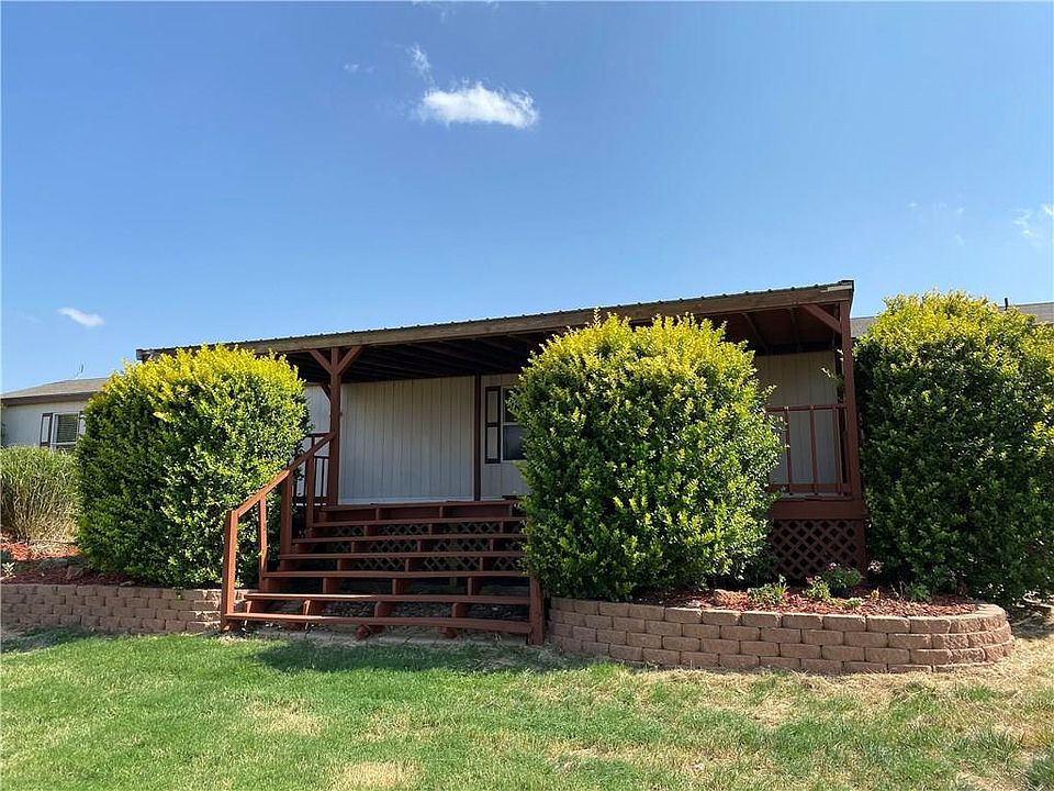 HIDDEN TREASURE! This property sits on 7.97 acres & provides the atmosphere of country living with close proximity to town. Privacy is no problem as this secluded property sits off the road with it's own private drive & can not be seen from the road. The Single-wide 2004 Solitare was moved to site in 2009 and has had a recent makeover. New paint, ceiling fans, light fixtures, flooring, well pump, & landscaping in 2020. Charming kitchen with island and tons of storage space throughout. The view is Amazing & can be enjoyed from the large covered wooden deck out front. It also has a 40'X30' shop with a loft, wood burning stove, & covered parking. RV hookup, water well, & septic. Get ready to make your budget friendly move or build your dream home on 7.97 acres of endless possibilities.