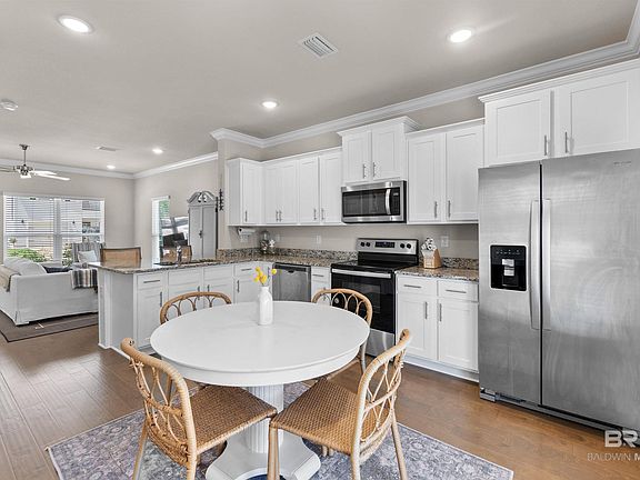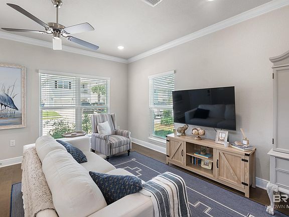 You can’t be much closer to the beach at this price, with low insurance and taxes! This 3-bedroom, 2 ½-bathroom single family home, sits in a prime location of Orange Beach, being right across the street from the Middle and High School, the Sportsplex, soon to be $46M Athletic Complex (under construction), state park and nature trails and only a ½ mile from great shopping, dining and concerts at the Wharf. After entering the home through the cozy front porch, the main level features LVP flooring throughout, high ceilings and an open floor plan with abundance of natural light and a convenient half bath. The open kitchen features granite countertops, stainless steel appliances with an electric range, crown molding and soft close cabinets. Upstairs, you will find 3 bedrooms and 2 baths. The master suite features a double vanity with beautifully tiled walk-in shower. Cypress Village community is known for its massive community pool that boasts a lazy river, zero-entry, covered pavilion with tvs and multiple gas grills. Other noteworthy features include brand new sod and irrigation system, Gold Fortified Certificate available for a substantial reduction in insurance expense and a new roof in 2021. *no short term rentals allowed. HOA covenants require 12 month minimum lease agreements. * Pre-recorded walkthrough video available upon request. Buyer to verify all information during due diligence.
