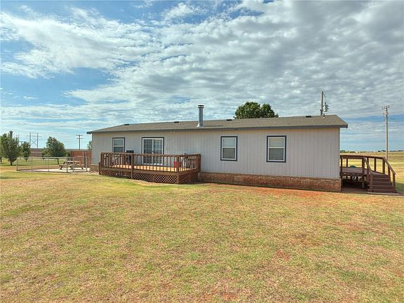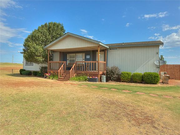 Country living in a great location--just miles North of Weatherford. 2006 Solitaire with brick skirting on 2.7 acres with a carport, 20x30x16 shop with additional concrete slab to park your travel trailer. Outdoor entertaining with covered porch, 2 decks, and an additional outdoor entertaining area. Manufactured home features open floor plan, all walk in closets, pantry, dining room with windows to enjoy the country views, built-in hutch in the second dining area/second living area, wood burning fireplace, split bedroom plan, garden tub, and separate shower in the master bathroom. Extra bonuses with the property includes the refrigerator, washer, dryer, and a water softener. Don't miss the opportunity to own this property with perfect sunset views.