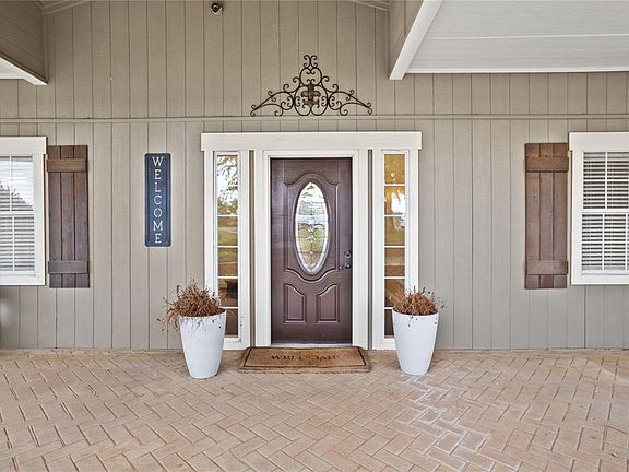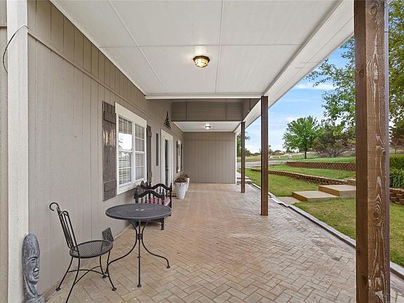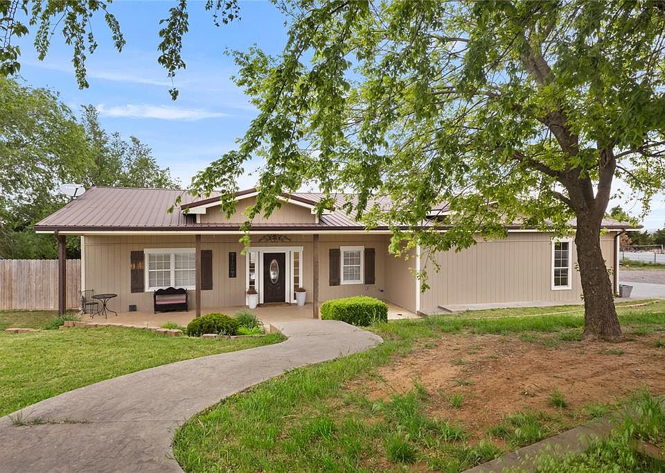 Welcome to your slice of country paradise! This charming 3-bedroom, 2-bathroom ranch-style home offers the perfect blend of comfort and functionality. As you step onto the huge covered front porch, you're greeted with extra tall ceilings and the warm embrace of home. Inside, discover a spacious office space, ideal for those who work from home or need a quiet retreat. Situated just outside of town on 1 acre (MOL) of land, this property provides the serenity of rural living with the convenience of nearby amenities. The highlight of the property is the impressive 40X40 metal shop, complete with a half bath and a 10 ft covered porch off the front. Whether you're a hobbyist, entrepreneur, or simply in need of extra storage space, this shop is sure to exceed your expectations. Additional features include a 2-car attached garage with a safe room for peace of mind, a sprinkler system to keep the yard lush and green, a wood privacy fence for added seclusion, and a durable metal roof to withstand the elements. Don't miss out on the opportunity to make this your forever home. Schedule a showing today and experience the best of country living!