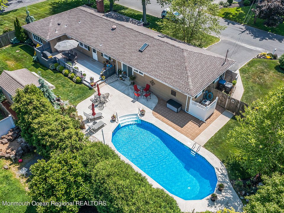 RARE Opportunity to own Lovingly Maintained 3Bdrm 2Bath Ranch Home in Desirable Manasquan Park. Fully Fenced Backyard is an Oasis offering Low Maintenance Perennials, In-Ground Pool w New Liner, Cabana, Trek Deck w in-line Gas Grill. Situated on an Oversized Corner Lot 100'x175' just 2 blocks from River Access for easy Kayaking, etc. Kitchen is the Heart of Home with Center Island, Stainless Steel Appliances, and access to Backyard. Dining Rm comes with Vaulted Beamed Ceilings and New Andersen Slider. This Home also offers: Full Basement, 2 Car Garage, Hardwood Flrs, Gas Fireplace, Sprinkler System, Garden Shed and so much more. Improvements Include: Newer Windows, Upgraded Central Air, Roof only 3yrs old. Come See this Beauty in Person!