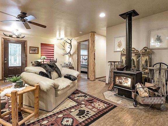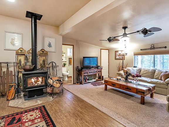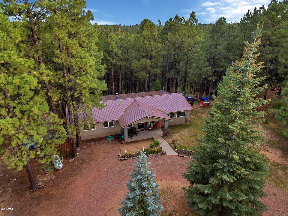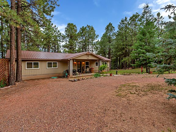 Back on the Market, your second chance to start your summer off right! Tastefully Remodeled Cabin awaits you in Forest Lakes Estates on a 1.05 Acre Lot that slopes down to a lush & picturesque ravine..level at bottom. Storage Shed & RV Hook up! Circle Drive leads to Covered Front Porch, excellent curb appeal! Step inside to a welcoming floor plan that features; Dining area, Spacious Kitchen *all appliances INCLUDED*, office nook, relaxation nook & Family room! Take notice of nicely appointed large Wood Beams! Flooring is all low maintenance; laminate wood & carpet. The wood burning stove is centered to warm all areas & makes for great ambience, Plus electric brick & oil heater & baseboard heat! There are TWO Bedrooms Plus a DEN that is shown as a THIRD Bedroom & TWO BATHROOMS! Master Suite features private exterior exit/entrance & ensuite Bathroom. BONUS Room/AZ Room..features a wood burning stove, dual pane windows viewing the towering Ponderosa Pines (great privacy) & area makes for a large entertaining space or another place to sleep guests. Laundry Room/mud room is generous in size & makes for excellent storage. This home has it all & is awaiting your arrival! *New Metal Roof 2011* *Water lines all replaced w/PEX* *Enclosed Porch & windows added in 2015* *Monsoon Construction, highly regarded in area, remodeled/rebuilt 2/3 or home!* Winter of 2011 caused damage to older existing manufactured home. Sellers had most of the manufactured home demolished. Site built additions were made and a new roof on the entire structure. During the renovation the county classified the home as a site built home, since most of it is site built. Propane tank is owned & will convey. NO HOA! Forest Lakes is at the top of the Mogollon Rim which is about a 2 hour scenic drive from the valley. Come enjoy temps 30-50 degrees cooler than Phoenix in the Tall Ponderosa Pines. There are several trout stocked LAKES in the area & numerous hiking /atv trails. NO HOA! We do though have a friendly community that holds events and has a community center. FLOA is the homeowners association, it is 100% Voluntary and operates by donation. Forest Lakes is the place to be so don't miss out on your opportunity to own your own escape from the heat or winter wonderland!