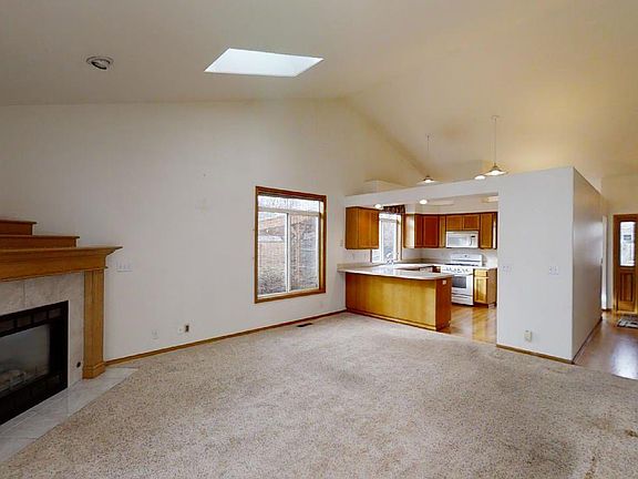 - RoomLivingRoomFeatures: Patio, Wall to Wall Carpet, Vaulted Ceiling(s), Sliding Doors
