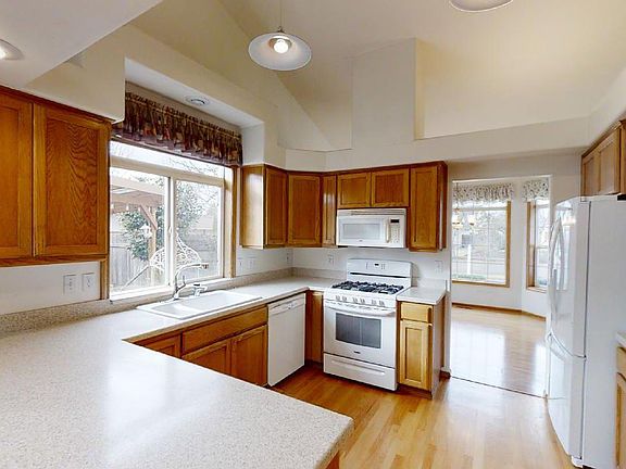 Great home in a wonderful neighborhood. Vaulted ceilings, skylights, corian counters & hardwood floors. Master suite has walk in shower and soaking tub as well as a walk in closet. Kitchen has tons of storage including a built in wine rack and gas stove. Beautiful dining area with a garden window and open floor plan. Light & bright. Great yard with garden area.