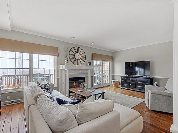 Beautiful Nevillewood townhome is set against a backdrop of sweeping scenic views. This thoughtfully maintained home with neutral décor is bathed in natural light. Tastefully designed open living/dining area has a gas fireplace, HW floors, and custom detailing. Enjoy stunning sunset views from an entertainment worthy deck. The refreshing, eat-in kitchen, with a welcome opening to the living area, features updates including new quartz counters & LVP flooring. Adding to the relaxing ambience of the spacious owner’s suite is its bath’s jetted tub. BR #2 is also en-suite with a full bath. A versatile 3rd level loft is a great 3rd bedroom, family room, or office. Finished lower level has the laundry & outside access through a 2-car garage. New roof & upper levels carpeting. Being situated further back on the lot than others provides valuable front yard space. Across from Hilltop Park & trails. Serene yet convenient to I79, I376, the airport, shopping and services.