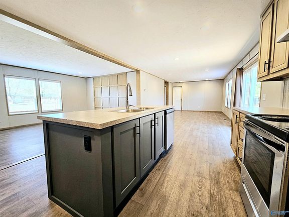 Come see this lovely country home just 40 mins to downtown Huntsville and Redstone Arsenal! Centrally located just 20 mins to either I-65, Guntersville, Cullman, Decatur or Priceville! Isolated owner's suite w/ its on bath, double vanities, 2 large closets, and a large storage area that could be used in many ways! 3 additional large bedrooms plus full bath, living room, & family room allows for multiple areas to relax & unwind. Kitchen has sprawling prep area w. well-organized Duracraft cabinets, SS appliances, & beverage nook! Situated on a large private lot w/ country views! Zoned for Brindlee Mtn schools w/ the option for Arab City Schools. Home is on a permanent foundation.