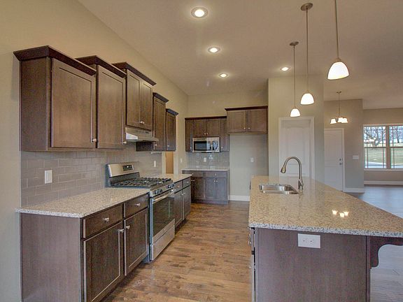 New home offering a great open floorplan with wood flooring throughout kitchen, eating, living room and hallways, large center island in the kitchen, granite countertops in kitchen with gas stove and walk in pantry. Formal dining area or more living space. 4th bedroom has its own full bath. Partially covered deck, inground sprinklers and situated on a corner lot.