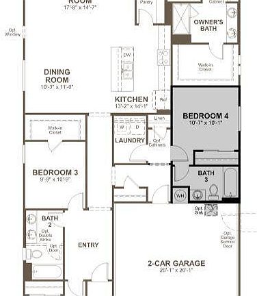 Explore this thoughtfully designed Larimar home, ready for quick move-in on a homesite boasting front yard landscaping and driveway pavers. Included features: an inviting covered entry; an elegant dining room; a spacious great room; a well-appointed kitchen offering 42'' cabinets, quartz countertops, stainless-steel appliances, a walk-in pantry and a center island; a lavish primary suite showcasing a generous walk-in closet and a private bath with cultured marble countertops; a convenient laundry; a bathroom in lieu of a storage area; a covered patio with an oversized lot and a 2-car garage. This home also offers stone tile flooring and ceiling fan prewiring in select rooms.