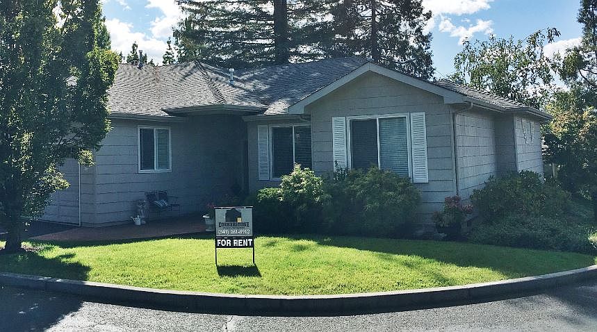 Newer East Medford home (duplex/zero lot line) in one of Medford's finest gated communities, Lone Pine Creek Estates. This 2 bedroom 2 bath with a bonus den/office is very roomy with 1520 sq. feet of living space. 2 car garage. Inside this open floor plan find an updated modern kitchen with wood floors, new interior paint, high ceilings (9 foot). Home comes with refrigerator, and washer and dryer. Outside you will find the front patio. Terms: 1 year lease. Owner pays HOA fee (includes yard maintenance and watering) , City utility bill, sewer and trash. Available November 1st. No Smoking Rent: $1,600 Deposit: $1,850 Pet Deposit: $800, 1 pet permitted under 45 pounds. Call Cornerstone Property Management: 541-261-6912 ($40 application fee).