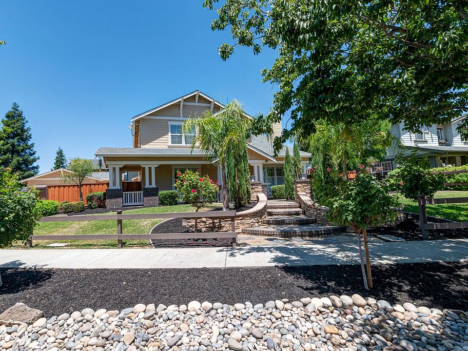 Stunning Home! Completely remodeled & move in ready. All new LVT flooring and premium plush carpet on the staircase & all bedrooms.Kitchen w/slab granite counter tops, travertine tile backsplash, cherrywood cabinetry, KitchenAide SS appliances. Other features include, SS sink, pendant lighting over the center island, eating nook w/additional cabinet space & under counter Sub-Zero wine refrigerator. The spacious family room has flush mounted speakers, built-in entertainment cabinet & fireplace w/travertine surround. One bedroom & full bath downstairs, formal living/dining off the entry, laundry room on first level & cherry wood banister w/iron balusters. Large master suite & bath w/walk-in closet & upgraded tile. Premium 12,272 sqft corner lot w no front neighbors. Backyard has covered slate patio, built-in bbq and tiled counter-top. Large grass area for play & vegetable garden w/drip system. The detached oversized two car garage has epoxy floors, workbench and cabinets for storage.