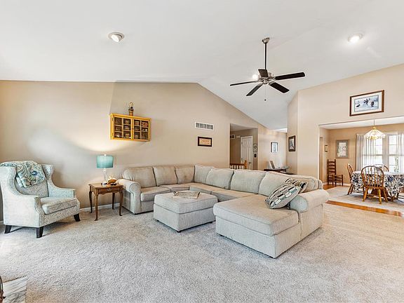 Just 1/2 mile from Highway 364, come home to a move-in-ready large open ranch-over 1900 sq. ft.! New carpet through out with some wood and wood laminate flooring. Open floor plan with abundant natural lighting. Stepping into the front foyer, you see the open living area with dining room, living room with wood-burning fireplace, kitchen and breakfast area. Cooking and organization are easy with the kitchen's large island, lots of counter space, cabinets and 2 pantries. Enjoy your morning coffee in the 3-season room just off the large kitchen and breakfast area or take in the day on the patio of the large well-kept yard with white vinyl privacy fence. The main bedroom has a large bay window, tray ceiling, ceiling fan, large bathroom with separate tub and shower and walk-in closet. White 6-panel doors throughout, newer A/C, new hot water heater, stainless steel appliances, main floor laundry AND subdivision has direct access to Katy Trail. Additional Rooms: Sun Room