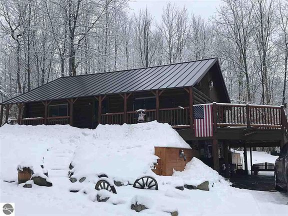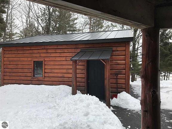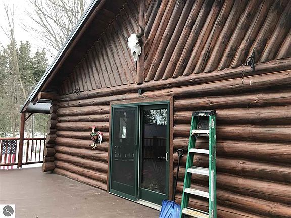 Beautiful open floor plan log home, being sold partially furnished ! Private setting less than 5 miles from West Branch. Finished walkout basement has room for the second bedroom with a 3/4 cedar interior bath. Upstairs loft is perfect for the at home office! Garden storage shed on back of 1/2 log sided garage & a workshop shed out back. Enjoy the evenings on the wrap around deck or covered front porch.