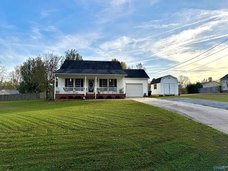 3-bedroom, 2-bath vinyl ranch home, perfectly situated in a country setting. This home features a functional kitchen, a comfortable primary suite, and an attached garage for convenience. Outside, you'll find a large backyard, perfect for outdoor activities, gardening, or relaxing. The property also includes a handy storage shed for extra storage space. Enjoy the peace of rural living while still being just a short drive to town. Don’t miss your chance to make this beautiful home your own—schedule a showing today! *Home Warranty Included With Full Price Offer*