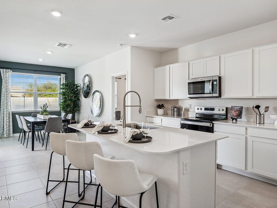LOCATION - LOCATION - LOCATION ready in April - walk to the neighborhood dog park or basketball, or volleyball or corn hole or tot lot parks or even to the grocery store this is a location you can't beat and easy convenience to the freeway! This beautiful home with a stone elevation has front yard landscaping, modern white shaker style cabinets, oversized tile floors, huge farmers sink with an upgraded faucet, quartz countertops, easy to use magnetic blinds, 9' high ceilings, recessed lighting, smart home with doorbell camera, etc., energy star certified to save you money on your utility payment, garage door opener and electric vehicle hook up in the garage and I am brand new construction with very special incentives you can't go wrong I am definitely a must see!