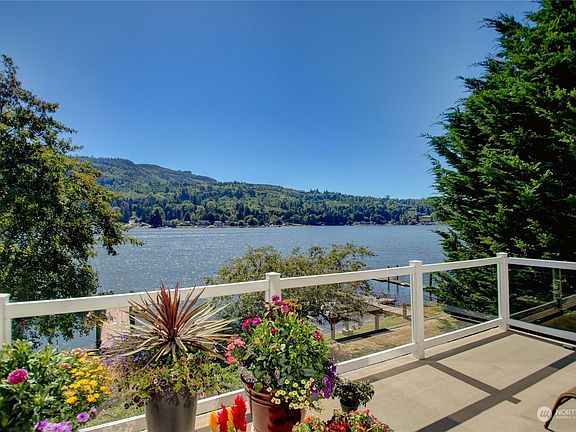 Fifty feet of waterfront on the sunny side of Big Lake will totally delight you! The setting is just lovely with terraced, beautifully landscaped yard. The house is just as nice with everything in perfect condition + many extras. Enter the home & the kitchen, dining & living rooms are all open with panoramic views of Big Lake thru large floor to ceiling windows. Custom cabinets, dble oven, cooktop & plenty of room at the bar to sit. The door opens to a wide deck that runs the entire length of the house. Back inside, there is a loft rm w/ half wall looking out to the main level & lake. There is also a very large storage room with granite counter & cabinets. Lower level w/3 bedrms, full bath + shower in utility rm. Main level 3 car garage.