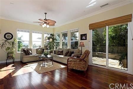 HIGHLY UPGRADED WITH VIEWS OF MT. BALDY, BIG BEAR MTS. TO TEMECULA AND CLEVELAND FOREST from your back yard... Trilogy Glen Ivy, Resort Style, 55+ Active Adult Community, Adjacent to Glen Ivy Hot Springs / Spa, Surrounded by Glen Ivy Golf Club. Close to 15, 91, 74, 60 and 10 Freeways. Minutes away from Trader Joe's, Von's, Sprouts, Dos Lagos, Corona Crossings, Tyler Mall, Ontario Mills, Victoria Gardens for your shopping and entertainment needs... 1,671 SF MANZANITA, UPGRADED 2 bedrooms, 2 bath, 2 Car Garage, Great Room, Kitchen, Breakfast Area, Dining Room, Laundry, Master and Guest Bedrooms... Upgraded Crown Molding, Custom Paint, Brazilian Cherry Hardwood Flooring... Granite Counter Tops at Kitchen Island and rear prep Counter. Stainless Steel Double Kitchen Sink / 4 Burner Cook Top / Convection Oven / Microwave / Dishwasher. Pullout pan drawers in Kitchen Cabinets, Ceiling Fans, Plantation Shutters, Custom Blinds, Custom Paint throughout. Tile Floors in Master and Guest Baths. Upgraded side yard and rear yard patio with custom walkway, Custom BBQ Island, Landscaping with Fruit Trees creating a park like environment. Custom Stucco and Tile Seat Wall at BBQ area. Wrought iron fencing installed on 2 side yards and across rear yard. Upgraded State-of-Art Health Club with Instructors, Indoor Lap Pool, Outdoor Pool, Indoor Walking and Running Track, Tennis, Pickle Ball, Bocce Ball, Main Lodge Lounge / Lobby, Ball Room, Craft Rooms, Game Rooms, Billiards, Mail Room.