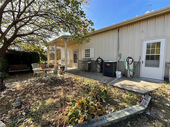 Spacious two bedroom (with possibility of 3rd) two and a half bath with an office and a large attached 2 car garage sitting on 2.89 acres! This home has an open floor plan, roomy kitchen, loft area perfect for small guest room or sewing room. The 2 car garage/shop includes 2 closets, a 3rd tool closet, full bathroom, utility room, bedroom and a Harvest Shelter storm shelter! The yard is flat and open with partial fencing and a creek on the back edge! There is central electric heat and A/C with backup baseboard heat and backup propane heat.