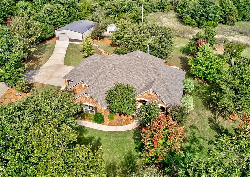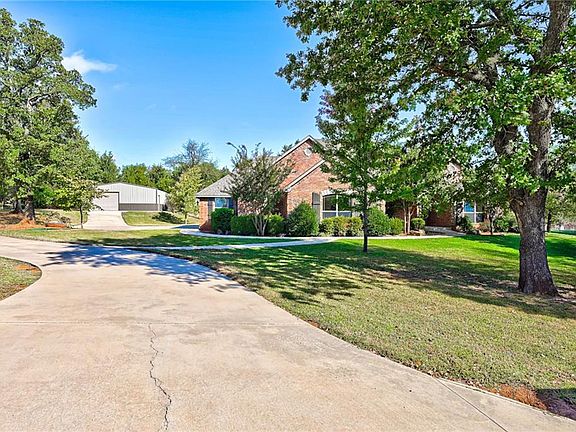 If you're looking for a modern farmhouse home oozing with style and charm sitting on more than 1.3 acres on a corner lot in Blanchard, look no further. This property was completed in 2018 and features a gorgeous open floorpan. The living space is large and offers plenty of space and large natural light. The gas fireplace is accentuated with a white shiplap wall making those cold winter days a dream. Enjoy meals with your friends and family in the dining area which is in between the living room and kitchen. Lay out the perfect charcuterie board on your built in dining room buffet. The kitchen counter tops are made of a beautiful white quartz, which contrast beautifully with the grey kitchen island and black matte appliances. By the way the owner says the French door refrigerator stays with the house! Just off the kitchen is a great pantry closet, garage, laundry and down the hall 2 more bedrooms and a hall bath. A wonderful owners suite is found on the other end of the home.