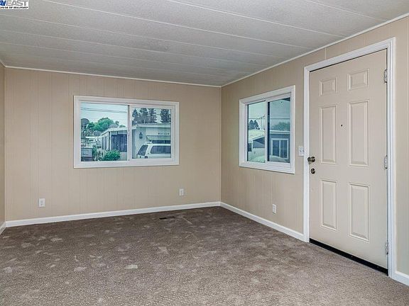 Come see this home with many updates. It features new carpet, a recently painted interior, and a newer stacked washer and dryer. The updated kitchen has a newer stove. The home also boasts newer windows with sun protection and newer fences. The home is also conveniently located to downtown San Leandro and BART. Space rent $1595