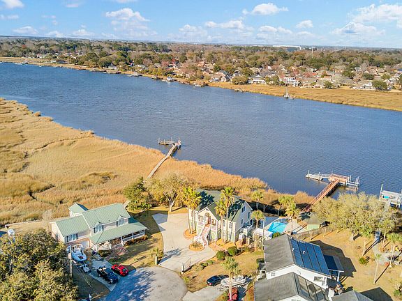 Spectacular waterfront home on the Ashley River in Charleston. Deep water with a nice dock, floating dock, and 12000 lb boat lift. Fantastic point lot in the highly sought-after Drayton on the Ashley neighborhood. This home features a saltwater pool, large gazebo/tiki hut and plenty of porch area for relaxing or entertaining with expansive water views. 4 BR, 2 1/2BA on main two floors with beautiful knotty pine floors throughout. (~2130sqft) Downstairs/ground level is an additional finished guest/in-law living area with a wet bar & full bath. (~525sqft) New roof (2023), Generac 24kw generator (2022), 1000lb electric cargo lift - ground to 1st level (2021)2C garage + ample parking. No mandatory HOA, but neighborhood boat ramp, parking, dock, and play area are available for an annual fee.