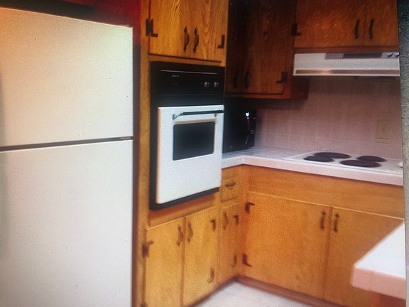 Eat in kitchen includes refrigerator, microwave , and ample space.