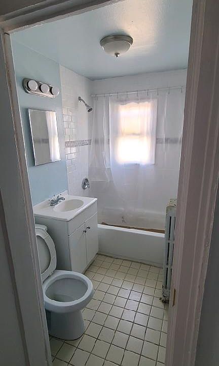 Upstairs apartment with all new floors thru out, new tub & tile in bathroom, new stove, cabinets, countertop, sink,tile in kitchen, newly painted thru out with new blinds. Old house, but apartment completely renovated lease, tenant responsible for 1/2 electric, gas and water. No smoking Street parking in front of premises