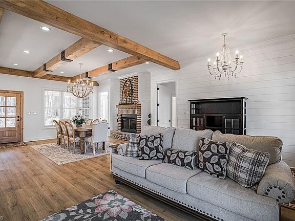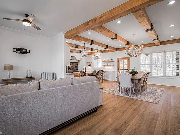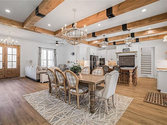 Stunning custom home located in High Rock's exclusive gated neighborhood, The Springs. Custom upgrades galore with charming accents throughout. This home's building process was just wrapped up in 2023, and the home is like-new. From the moment you pull into the driveway with the water and mountain views until you walk through the double door entryway, you will feel the welcoming warmth this home offers. Exposed timber beams, walk-in pantry, large island, zline gas cooktop, brick backsplash and double ovens are just a few of the features the kitchen offers. Custom pass through kitchen window opens to outdoor covered patio w/ bar and outdoor fireplace makes the perfect entertaining space! Primary suite offers tiled shower, dual vanities, soaking tub, and amazing closet. Secondary bedrooms boast high ceilings with crown mouldings. Spacious bonus room w/ walk out conditioned attic space that has endless possibilities. Neighborhood amenities include pool, tennis and clubhouse! Must see!