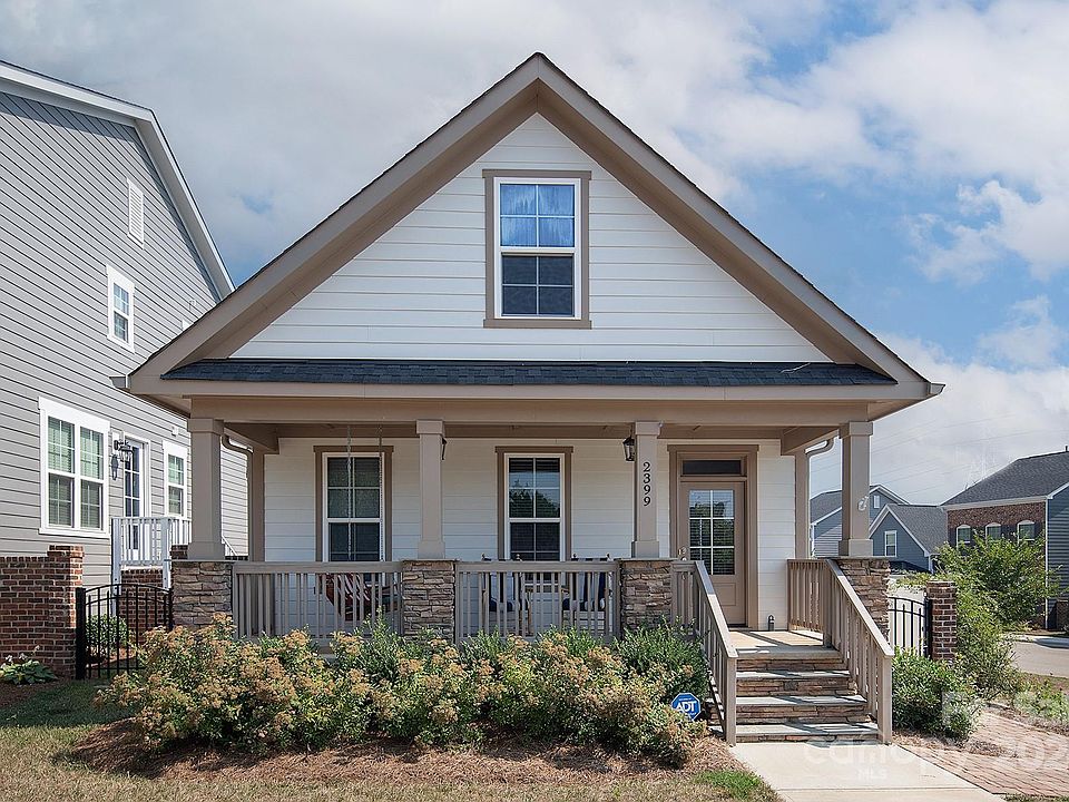 Fantastic 3 bedroom/3 full bath corner lot floorplan has primary & 2nd bedroom on the main level. Charming rocking chair front porch greets you as you walk up to the home. Entering the home the first room on left is bedroom 2 that seller has chosen to use as office. This room has large closet & attached full bathroom. The main floor living space is open to the kitchen/eat in area. Also features a side door accessing the private outdoor courtyard. Kitchen has white cabinets & tile backsplash, island, pantry & coffee bar. Large Primary Bedroom also located on main floor features large walk in closet. Main floor laundry room. Hardwood stairs lead to 3rd bedroom/bonus room space. It also has a large closet & full bath. Be sure to check out the walk in attic storage space! Great community close to Lake Norman, walking distance to library, groceries, restaurants & Westport Club w/several membership packages available for an additional fee.